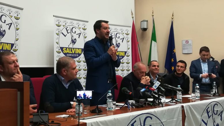 Il leader della Lega Matteo Salvini, vincitore incontrastato di questa tornata elettorale in Abruzzo con un oltre 27% che proietta il suo partito al primo posto in Regione, non ha voluto mancare oggi pomeriggio a L’Aquila per complimentarsi di persona con il neo presidente Marco Marsilio ed analizzare il voto: