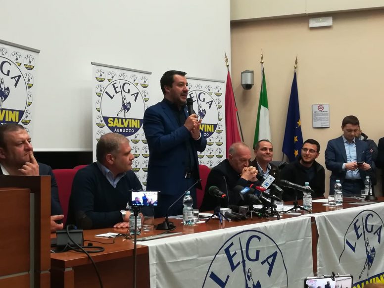 Il leader della Lega Matteo Salvini, vincitore incontrastato di questa tornata elettorale in Abruzzo con un oltre 27% che proietta il suo partito al primo posto in Regione, non ha voluto mancare oggi pomeriggio a L’Aquila per complimentarsi di persona con il neo presidente Marco Marsilio ed analizzare il voto: