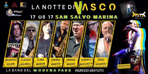 Nella nota di presentazione si legge che “Parteciperanno all’evento da Antonio Cane e Antonio Renzone con il patrocinio del comune di San Salvo, il sassofonista Andrea Innesto detto “Cucchia”, il chitarrista Maurizio Solieri, lo storico bassista Claudio Golinelli conosciuto come “Il Gallo”, il tastierista Alberto Rocchetti e il chitarrista Andrea Braido. A completare la rosa dei musicisti di Vasco ci saranno anche Clara Moroni , cantante e vocalist del rocker di Zocca sin dall’album “Gli spari sopra” del 1993 e soprannominata dallo stesso Vasco “la Ferrari del Rock”, Diego Spagnoli, direttore del palco del Modena Park e componente attiva dal 1996 di tutti gli spettacoli con presentazioni, discorsi e look che diventano ogni volta uno spettacolo nello spettacolo, Christian Tipaldi, fotografo ufficiale dei concerti di Vasco che avrà il compito di immortalare anche il live di San Salvo e YAYAdj, la famosa dj molisana che ha aperto le date del tour “Live KOM”. Insomma una full immersion nell’apprezzatissimo mondo di Vasco a poco più di un mese dal Modena Park, evento quest’ultimo che verrà sicuramente ricordato nella storia della musica italiana”.