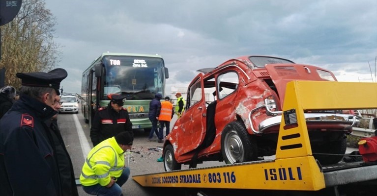 La vittima è un uomo di 74 anni di Pollutri, residente a Pescara, il quale, mentre era alla guida di una vecchia Fiat 500, sulla Statale 16 in territorio del comune San Vito Chietino, forse a causa della strada resa viscida dalla pioggia, ha perso il controllo del mezzo e si è schiantato contro un autobus della Tua che stava trasportando gli operai allo stabilimento della Sevel di Atessa.