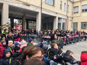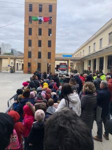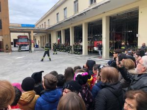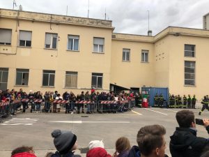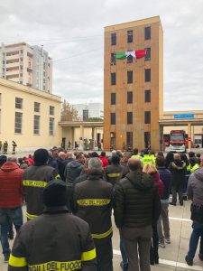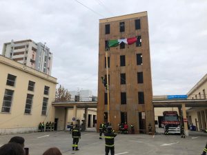 Nel corso della cerimonia, alla presenza di tanti cittadini e numerosi bambini, i Vigili del Fuoco hanno effettuato delle simulazioni riguardanti lo spegnimento di un incendio ed operazioni di soccorso con tecniche di derivazione alpinistica. Altri Vigili si sono calati dal punto più alto della facciata principale della sede di servizio per stendere una grande bandiera tricolore.