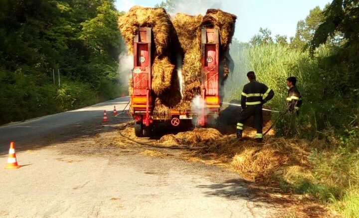 Un rimorchio che trasporta paglia è andato a fuoco , questa mattina, a Sant’Egidio alla Vibrata. I vigili del fuoco di Nereto, prontamente intervenuti sul posto hanno domato le fiamme in poco tempo. L’incendio ha interessato un mezzo pesante che trasportava paglia lungo la Bonifica del Tronto, tra Ancarano e Sant’Egidio. Il rogo, la cui origine è al vaglio di vigili e carabinieri, ha interessato la parte posteriore del mezzo pesante.