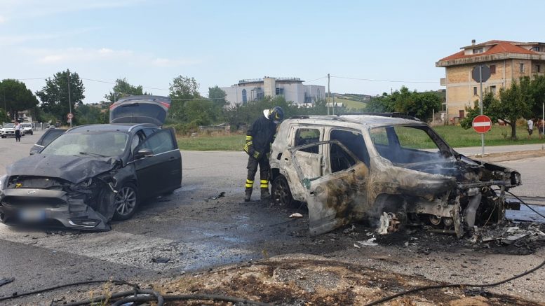 Nel pomeriggio di oggi due persone sono rimaste coinvolte in un incidente stradale avvenuto a Sant’Egidio alla Vibrata. Una delle vetture coinvolte è stata distrutta dalle fiamme.
