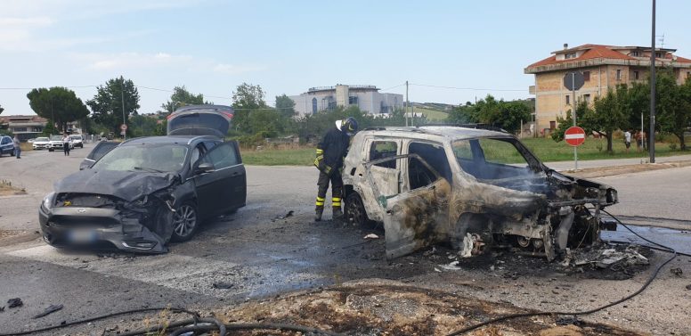 Nel pomeriggio di oggi due persone sono rimaste coinvolte in un incidente stradale avvenuto a Sant’Egidio alla Vibrata. Una delle vetture coinvolte è stata distrutta dalle fiamme.