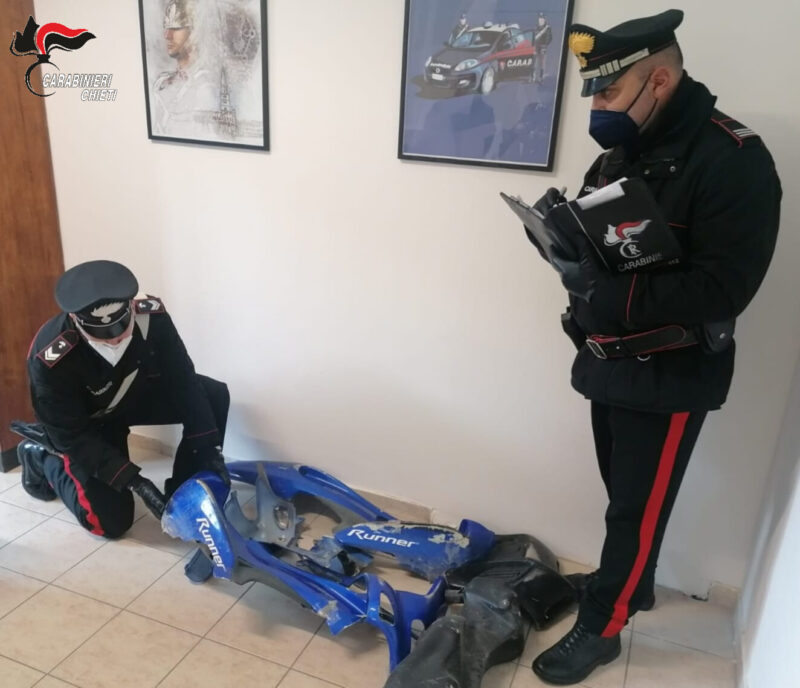 A casa di uno dei due ragazzi sono state trovate alcune parti dello scooter rubato che è stato smontato in pezzi e l’altro giovane ha confessato di aver rubato il mezzo perchè “gli serviva come pezzi di ricambio” per il suo scooter che è uguale per marca e modello.Il telaio, infatti, è stato prima sezionato in parti e poi gettato via.