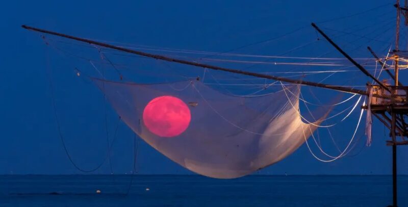 L’immagine, molto suggestiva, ritrae la luna piena come intrappolata nella rete di un trabocco, antica struttura da pesca. La foto è stata selezionata per la celebre rubrica della NASA dedicata alla fotografia e può essere trovata sul loro sito web ufficiale.