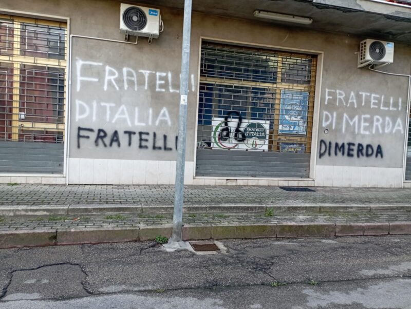 Reazioni e commenti di condanna degli esponenti politici dopo gli insulti scritti, la scorsa notte, sulla vetrina e sui muri dell’ingresso della sede di Fratelli d’Italia a Montesilvano