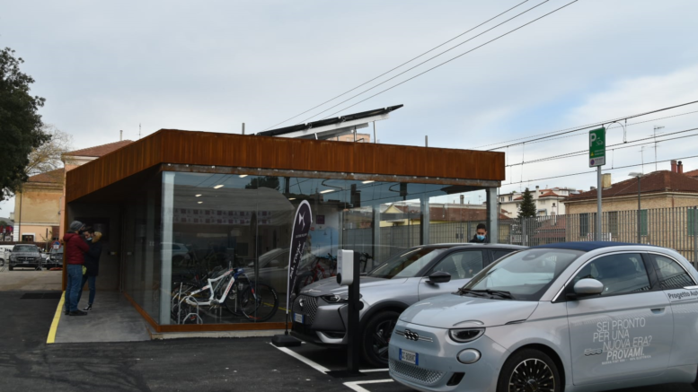Nella piazza della stazione ferroviaria è stata consegnata la struttura realizzata nell’ambito del progetto “MoveTE”, un programma sperimentale nazionale di mobilità sostenibile casa-scuola e casa-lavoro promosso dal Ministero dell’Ambiente e della Tutela del territorio e del mare.