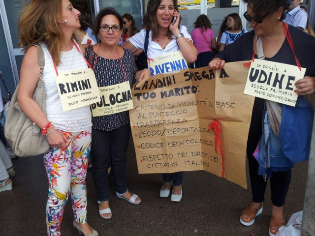 Non si ferma la protesta degli insegnanti contro i trasferimenti decisi dal Governo Renzi . Domani anche in Piazza Salotto a Pescara , a partire dalle ore ore 18.30, faranno sentire la loro voce i comitati docenti Nastrini rossi. Manifestazioni anche in Puglia con sit-in, in occasione della visita del premier Matteo Renzi alla Fiera del Levante, e in Campania , altro sit-in in Piazza Plebiscito a Napoli. Il neocostituito movimento dei Nastrini rossi abruzzesi è formato dai docenti assunti in virtù della L. 107/2015 (cosiddetta “Buona Scuola”) e costretti al trasferimento su base nazionale