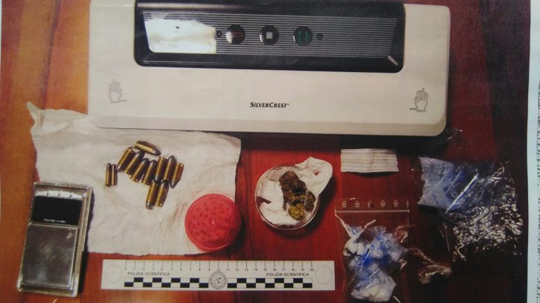 In manette S.S, 27 anni di Pescara, con diversi precedenti penali, che spacciava droga mentre si trovava agli arresti domiciliari nella sua abitazione in zona Colli. Lo scorso 14 novembre gli agenti , con l’ausilio dell’unità cinofila, hanno perquisito l’appartamento e tra i vestiti che si trovavano all’interno di un armadio hanno scoperto otto involucri, contenenti quasi 10 grammi di cocaina, quattro dosi di marijuana per un peso di poco più di 2 grammi, una dose di hashish, un bilancino di precisione, materiale per il confezionamento ed un foglio di carta su cui erano annotate cifre e nomi. Oltre alla cocaina, in quegli stessi vestiti, avvolte in una bustina di plastica, erano occultati dieci proiettili per pistola, calibro 9X21 e due munizioni calibro 22. Il ventisettenne è stato arrestato con l’accusa di detenzione ai fini di spaccio di sostanze stupefacente e segnalato per la detenzione abusiva delle munizioni.