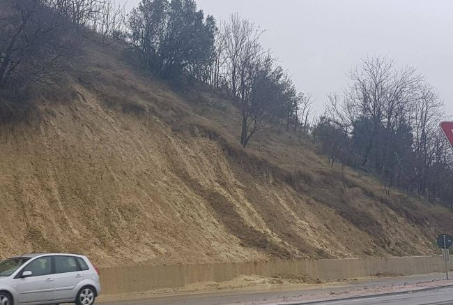 Spoltore: frana sulla SS 16bis, questa mattina un ampio fronte, sul versante ad ovest, é venuto giù appesantito dall’abbondante pioggia.