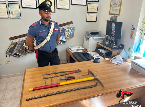 I due uomini, già noti alle forze dell’ordine, ieri sono stati trovati in possesso di diversi arnesi da scasso tra cui un piede di porco lungo oltre un metro, una tronchese, una pinza, diverse chiavi inglesi ed un piccone.