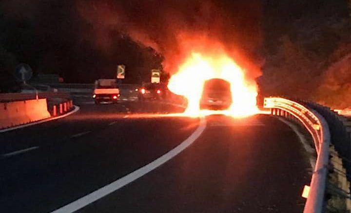 Strada dei Parchi: auto in fiamme all’uscita dal Traforo del Gran Sasso, tempestivo l’intervento dei mezzi di soccorso sull’A24.