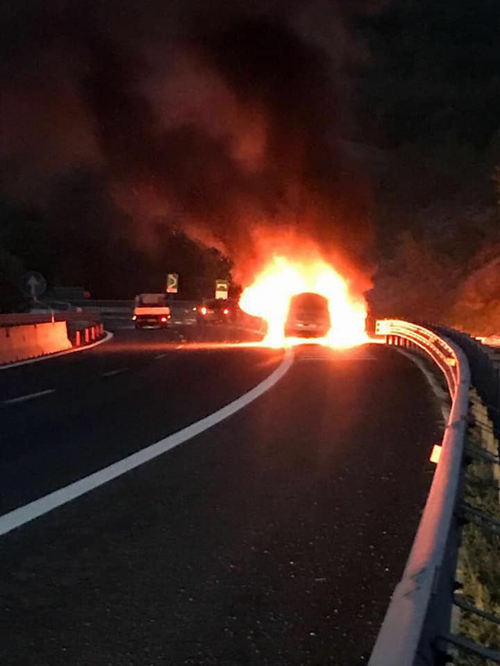 Strada dei Parchi: auto in fiamme all’uscita dal Traforo del Gran Sasso, tempestivo l’intervento dei mezzi di soccorso sull’A24.