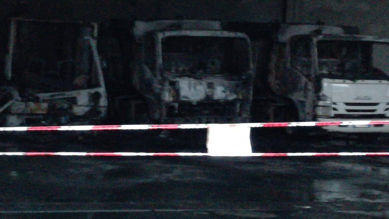 Tre mezzi per lo spazzamento dei rifiuti sono stati completamente distrutti dalle fiamme mentre uno è stato seriamente danneggiato. Sul posto i vigili del fuoco sono subito arrivati per spegnere ed accertare le cause del rogo mentre i carabinieri stanno indagando per fare luce sulla vicenda.