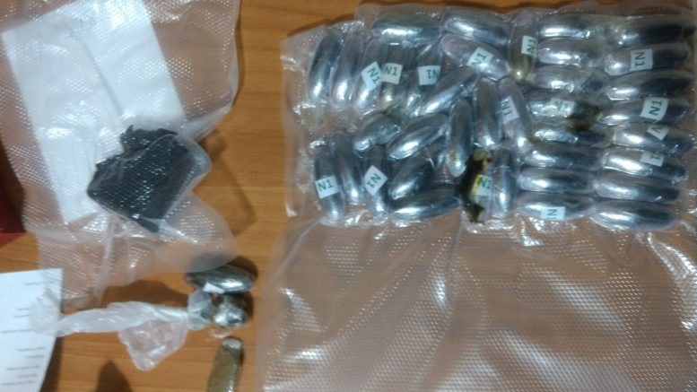I militari hanno scoperto, all’interno di una busta di plastica di colore blu che era nascosta in una intercapedine realizzata tra la fodera e l’involucro esterno di una valigia, circa 70 grammi di cocaina, 39 ovuli contenenti circa 400 grammi di hashish e 0,7 grammi di marijuana.