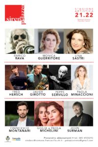 Nella nota di presentazione della nuova stagione si legge che <Dopo le ultime due esaltanti stagioni artistiche, che hanno visto la presenza di grandi nomi quali Giancarlo Giannini, gli Yellowjackets, Sergio Cammariere, Uto Ughi, e la stagione online «Pillole di Teatro» (trasmesse sui canali social durante il lockdown), la nuova programmazione dell’«Auditorium Sirena» vedrà tra i suoi protagonisti artisti molto noti al grande pubblico, con spettacoli di primissimo livello e di contenuto>.