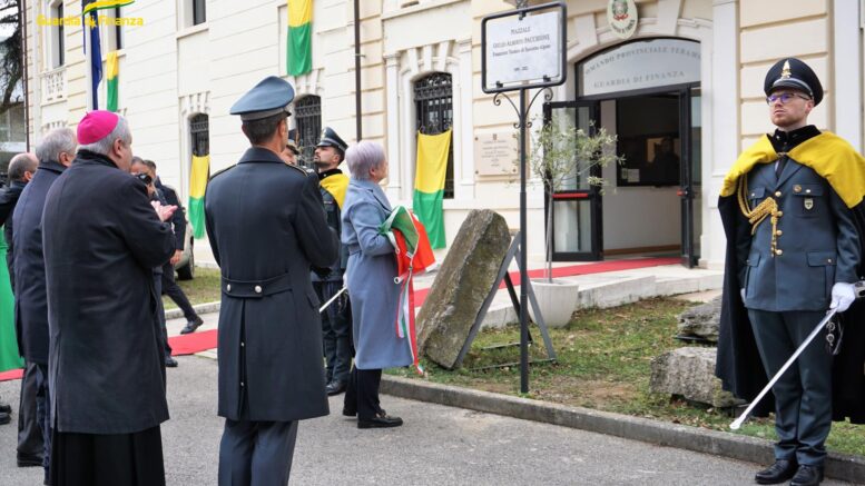Nella mattinata odierna, in concomitanza con la Visita Pastorale alle Fiamme Gialle della Città e della Provincia di Teramo da parte dell’Ordinario Militare per l’Italia, Monsignor Santo Marcianò, il piazzale interno della Caserma è stato intitolato, con una solenne cerimonia, al Finanziere Tecnico Soccorso Alpino Giulio Alberto Pacchione, scomparso il 17 agosto 2023 durante un’attività di servizio a Tarvisio (UD).