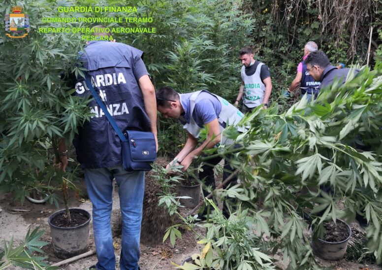 A seguito di una brillante attività di sinergia tra i reparti terresti e quelli aeronavali, la Guardia di Finanza di Teramo ha individuato e sequestrato oltre 2000 piante di marijuana su una collina dell’entroterra teramano.
