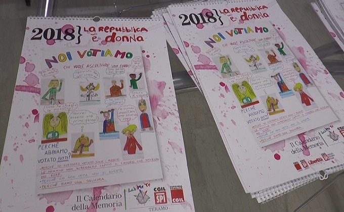 Il calendario della memoria viene realizzato ogni anno grazie alle attività scolastiche previste in alcune classi delle scuole primarie della provincia di Teramo. Per i dodici mesi del 2018 i bambini hanno lavorato sulla conoscenza e degli avvenimenti significativi della nostra storia repubblicana, con particolare attenzione al diritto al voto sancito con il suffragio universale. La presentazione ufficiale del calendario avverrà martedì 9 gennaio, alle ore 10, presso l’aula magna dell‘università di Teramo, l’evento ha per titolo “2018, La Repubblica è donna”.