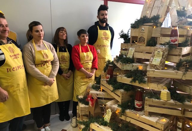 Un albero di Natale contadino è stato allestito, questa mattina, in via Roma a Teramo, dagli agricoltori del mercato di Campagna Amica di Coldiretti.