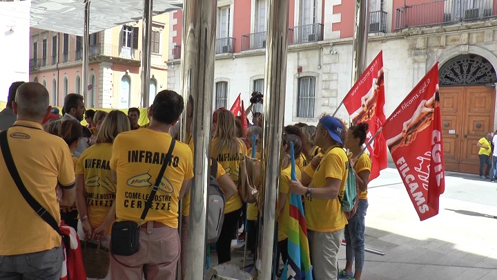 Sit-in di protesta da parte dei lavoratori dell’ex Mercatone Uno davanti alla prefettura di Teramo, manifestazione alla quale hanno partecipato i due punti vendita teramani Scerne di Pineto e Colonnella.