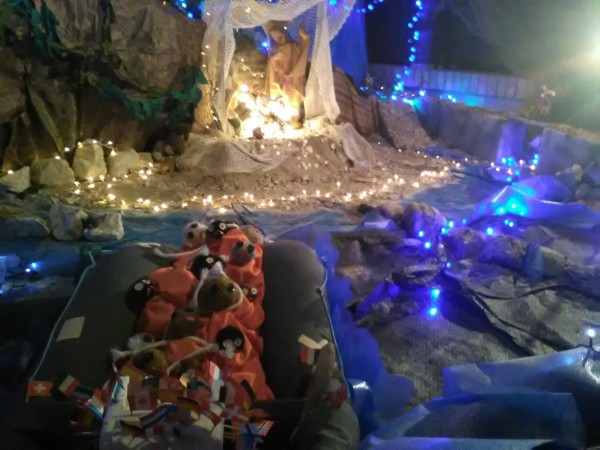 Una iniziativa molto particolare quella realizzata dalle suore benedettine del monastero di Sant’Atto, guidate dalla badessa madre Veronica, e aiutate dalle devote del monastero a illuminare il presepe, anche con un faro ricavato dalla sirena di un’ambulanza.I pellegrini arrivano in gommone, solcando un mare procelloso. All’orizzonte c’è il Gran Sasso e i suoi borghi, tra i luoghi simbolo dell’Abruzzo. Nel giorno di Natale, il 25 dicembre, dopo la messa, le religiose accompagneranno i fedeli nell’adorazione del Bambino che viene.