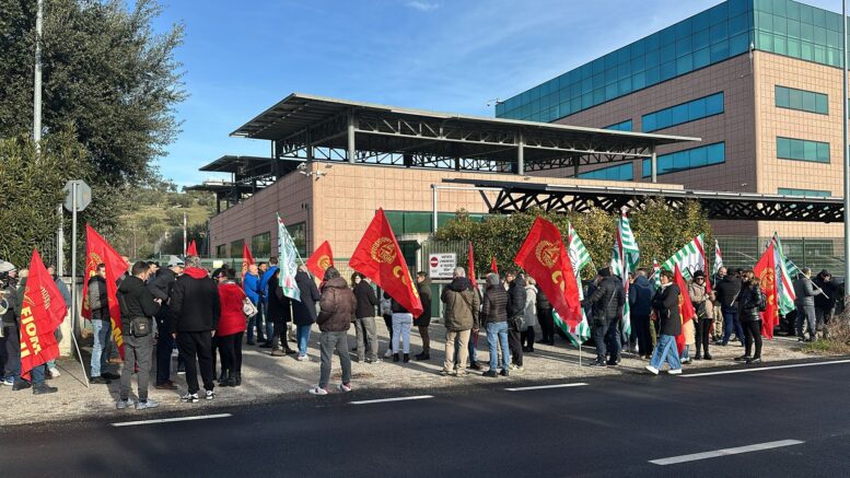 Metalmeccanici in sciopero oggi a Teramo. Sotto la sede di Confindustria presidio dei lavoratori e dei rappresentanti dei sindacati