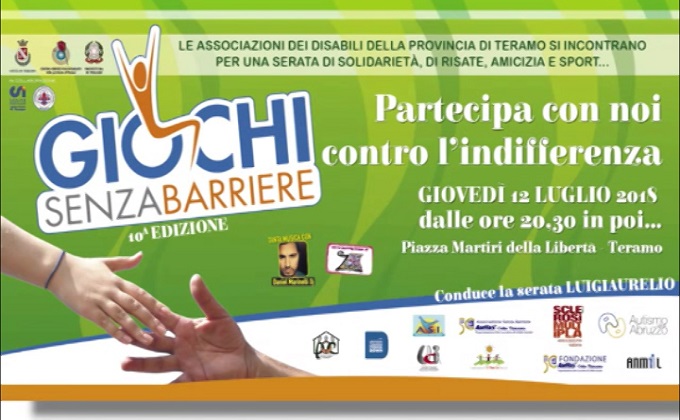 Le associazioni dei disabili della provincia di Teramo tornano in piazza Martiri della libertà giovedì 12 Luglio per “Giochi senza Barriere”.