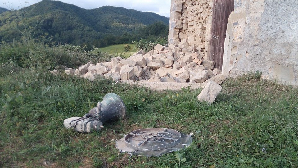 Terremoto Centro Italia: Crolli a Valle Castellana, in Provincia di Teramo, dove si registrano diversi danni a strutture, in particolare alla chiesa del paese. nessun danno, fortunatamente, alle persone.