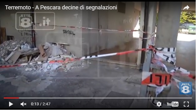 A Pescara città chiesti numerosi interventi ai Vigili del Fuoco, in particolare in due palazzine Ater in Via Lago di Borgiano ed in Via Basento. Decine di famiglie, tra cui anche anziani e bambini, non si sentono sicure, molte di queste sono giorni che dormono in macchina. Gli esperti dei Vigili del Fuoco hanno in parte rassicurato i condomini, ma le crepe, specie sulle travi portanti del piano terra, sono abbastanza evidenti. Nella giornata di ieri il vice sindaco Del Vecchio, sollecitato dai consiglieri comunali del M5S, ha effettuato, insieme agli uomini della Polizia Municipale, un ulteriore sopralluogo, ma al momento non é stata ancora disposta un’ordinanza di evacuazione. Preoccupazione anche per la storica e monumentale Torretta Dannunziana di Villa del Fuoco.