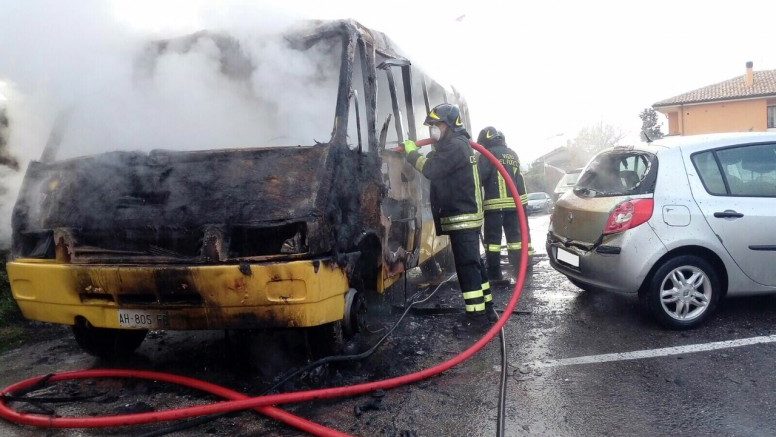 Stamattina, intorno alle 8:30, una squadra del Comando dei vigili del fuoco di Teramo con un’autopompa, è intervenuta in località Piano Grande di Torricella Sicura, a seguito dell’incendio di uno scuolabus. L’incendio si era sviluppato nel vano motore collocato nella parte anteriore del bus. L’autista si era subito accorta della presenza del principio di incendio ed aveva prontamente arrestato il mezzo, facendo immediatamente scendere i bambini che in quel momento si trovavano a bordo. Pertanto l’incendio ha provocato solo danni allo scuolabus, che è rimasto avvolto dalle fiamme e, marginalmente, ad alcune auto parcheggiate nelle immediate vicinanze. Nessuna conseguenza invece per le persone trasportate. Dalla sede centrale è stata inviata sul posto anche un’autobotte, necessaria per rifornire di acqua il mezzo operativo impegnato nell’azione di spegnimento.