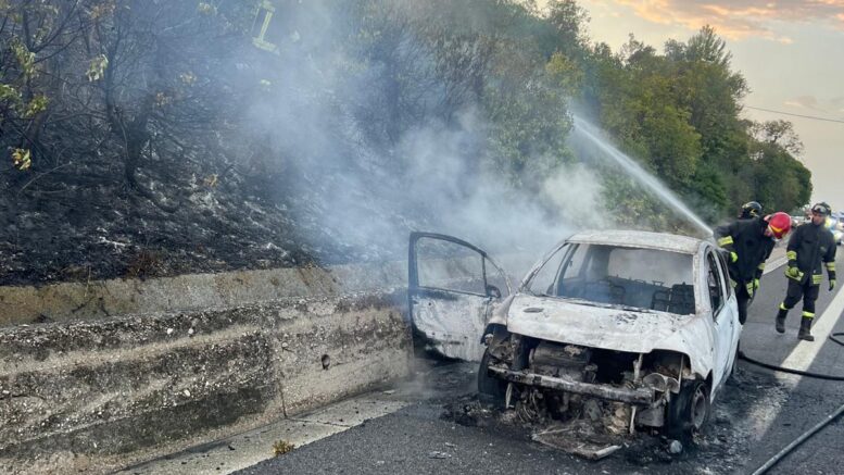 I vigili del fuoco, giunti sul posto con un’autopompa e un fuoristrada con modulo antincendio, hanno domato rapidamente il rogo e la Citroen C3 è stata messa in sicurezza e poi recuperata da un carro attrezzi. Spento anche l’incendio che si era propagato anche alla vicina scarpata.
