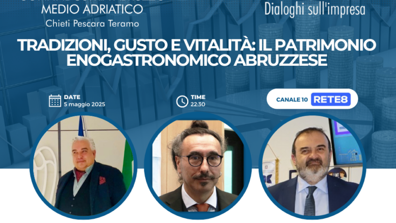 Tradizioni, gusto e vitalità: il patrimonio enogastronomico abruzzese. Questo il titolo della puntata di “EconoMIA, dialoghi sull’impresa”, format tv di Confindustria Abruzzo Medio Adriatico e Rete8 che andrà in onda lunedì 5 maggio alle 22:30