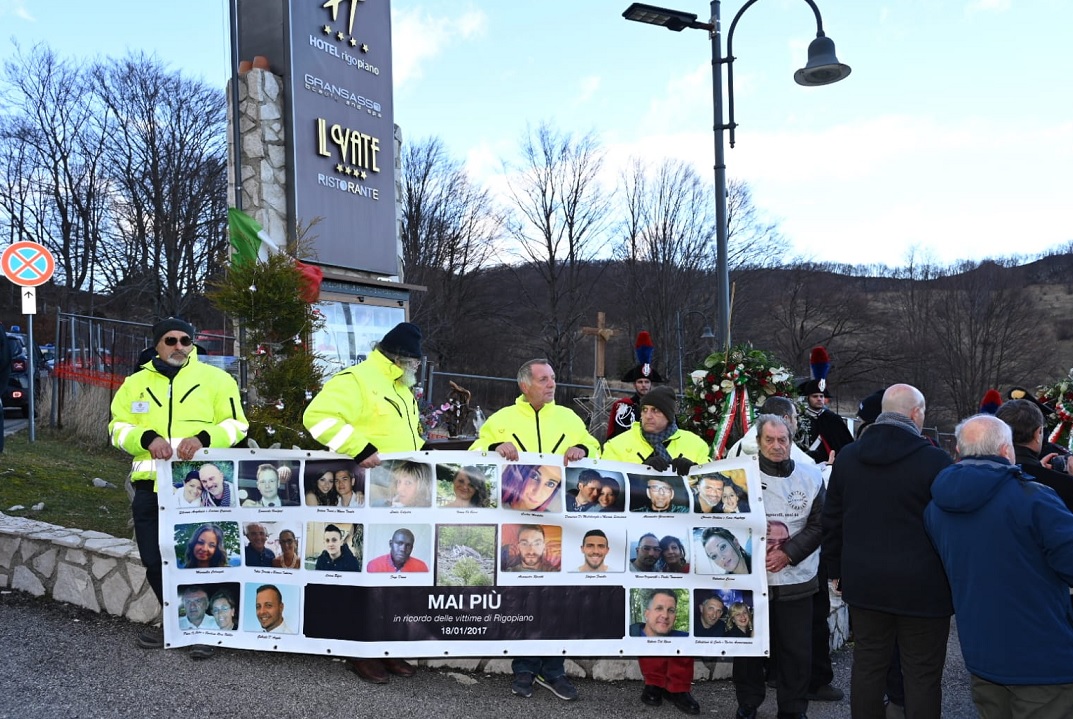 Dopo la fiaccolata, la deposizione dei fiori alla base del cippo che una volta segnalava l’ingresso dell’hotel ed è ora diventato un simbolo inequivocabile della tragedia, alla presenza delle istituzioni: il prefetto di Pescara, la Bergamotto, il presidente Marsilio, quello del Consiglio regionale Sospiri, e rappresentanti delle forze dell’ordine. Dopo la deposizione dei fiori è stata celebrata la messa, nel piazzale, tra ciò che è rimasto dell’hotel.