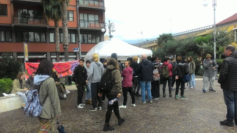 Studenti in piazza a Pescara per protestare contro gli aumenti degli abbonamenti degli autobus e chiedere migliori servizi.