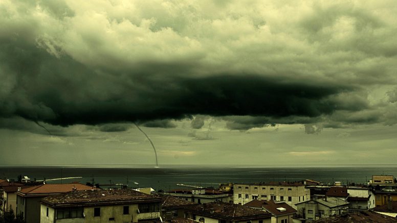 Immagini spettacolari che hanno immortalato il vortice che nasce dall’incontro tra l’elevata temperatura della superficie marina, che può fornire notevole energia a sistemi nuvolosi in apparenza di scarsa consistenza, e creare contrasto tra l’aria calda ascendente (marina) e aria fredda discendente (della perturbazione).