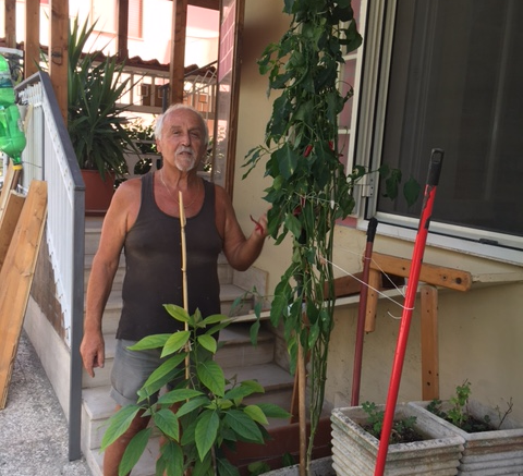 L’autore si chiama Vincenzo Tina, ex ispettore della Asl di Pescara, dirigente dell’Associazione Contribuenti Montesilvano e grande appassionato non solo di botanica, ma anche d’invenzioni particolari come la bicicletta porta-canoa, speciali vetri riflettenti, un segnatempo meteorologico e tanto altro. In questa circostanza particolare Tina si é voluto cimentare con un particolare esperimento che ha prodotto un peperoncino rampicante che ha già raggiunto l’altezza di due metri.