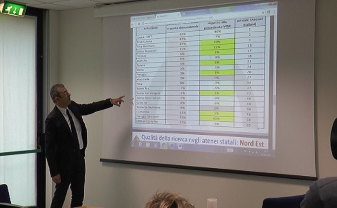 “Piccoli progressi e segnali positivi, emergono da alcuni indicatori importanti come la didattica 27° posto, la sostenibilità con il rapporto tra studenti e docenti nei singoli corsi 9° posto in salita dall’11°, la mobilità, visto il grande impulso dato all’internazionalizzazione, con studenti Erasmus in arrivo e in partenza 15° posto dal 18°, la competitività della ricerca, la qualità della produzione scientifica, la qualità dei dottorati, il voto degli studenti e prima, insieme ad un’altra trentina di atenei nella distribuzione di borse di studio. i dati negativi arrivano dall’attrattivà che si si scende al 32° posto dal 27°, dagli stage 44° posto dal 35°, dalla dispersione sempre abbastanza elevata e dall’occupazione 53° posto dal 32°.”