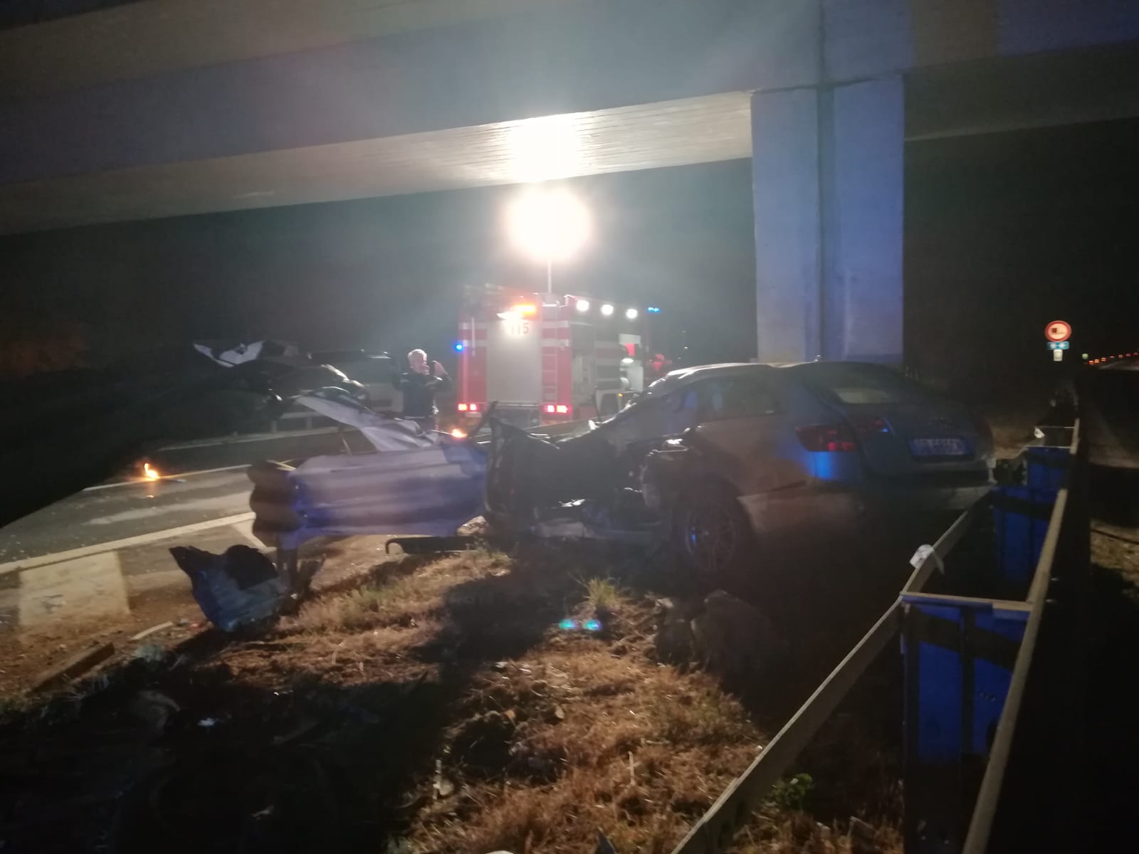 (Sotto le foto dell’auto distrutta dopo l’impatto)