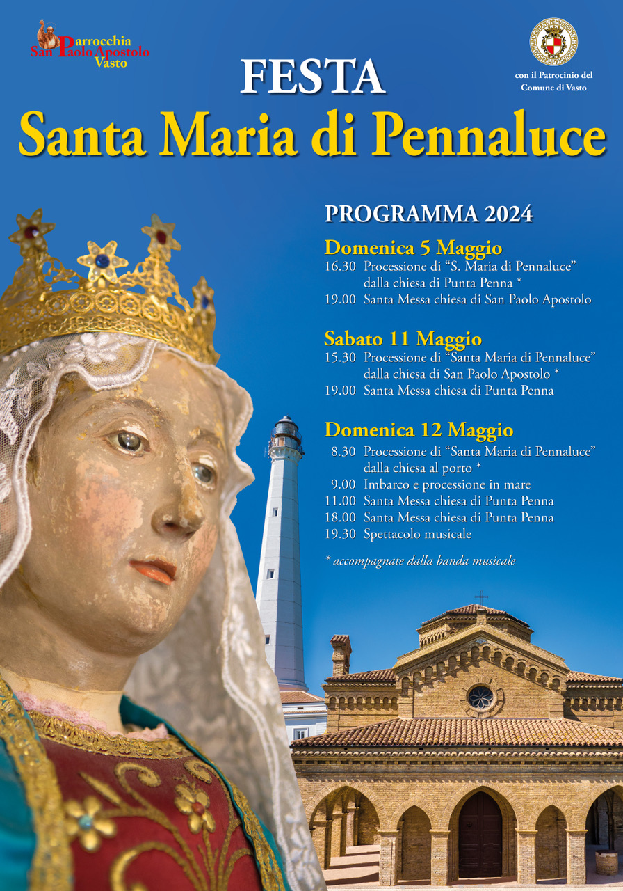 Domenica 5 maggio, dalla piccola Chiesa di Santa Maria di Pennaluce, di località Punta Penna, il corteo arriverà nella Chiesa parrocchiale di San Paolo Apostolo, nel cuore del popoloso e omonimo quartiere.