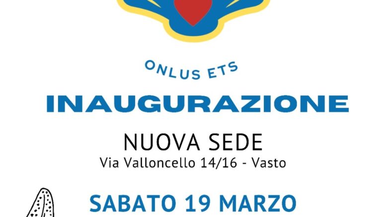 Sabato prossimo a Vasto sarà inaugurata la nuova sede de la “Conchiglia ETS”. L’associazione ha scelto due date simboliche per l’apertura e l’inizio delle attività: il 19 e 21 marzo.