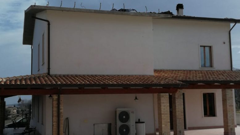 A Scafa il vento ha anche divelto il tetto di un edificio dei proprietari della cantina Duchi di Castelluccio (nella foto)