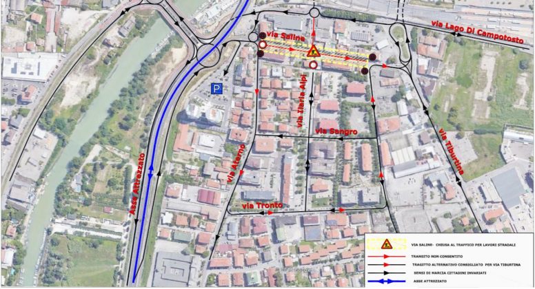 Al fine di limitare al minimo i disagi avremo il supporto di due pattuglie della Polizia Municipale che provvederanno a deviare il traffico su via Tronto e via Aterno, per la mobilità alternativa al cantiere. Per chi percorre l’asse attrezzato si consiglia di arrivare alla zona da uscite diverse da quella del Ponte Flaiano che potrebbe subire dei rallentamenti.
