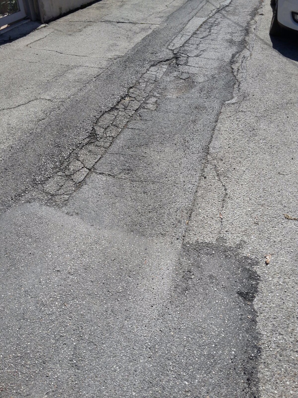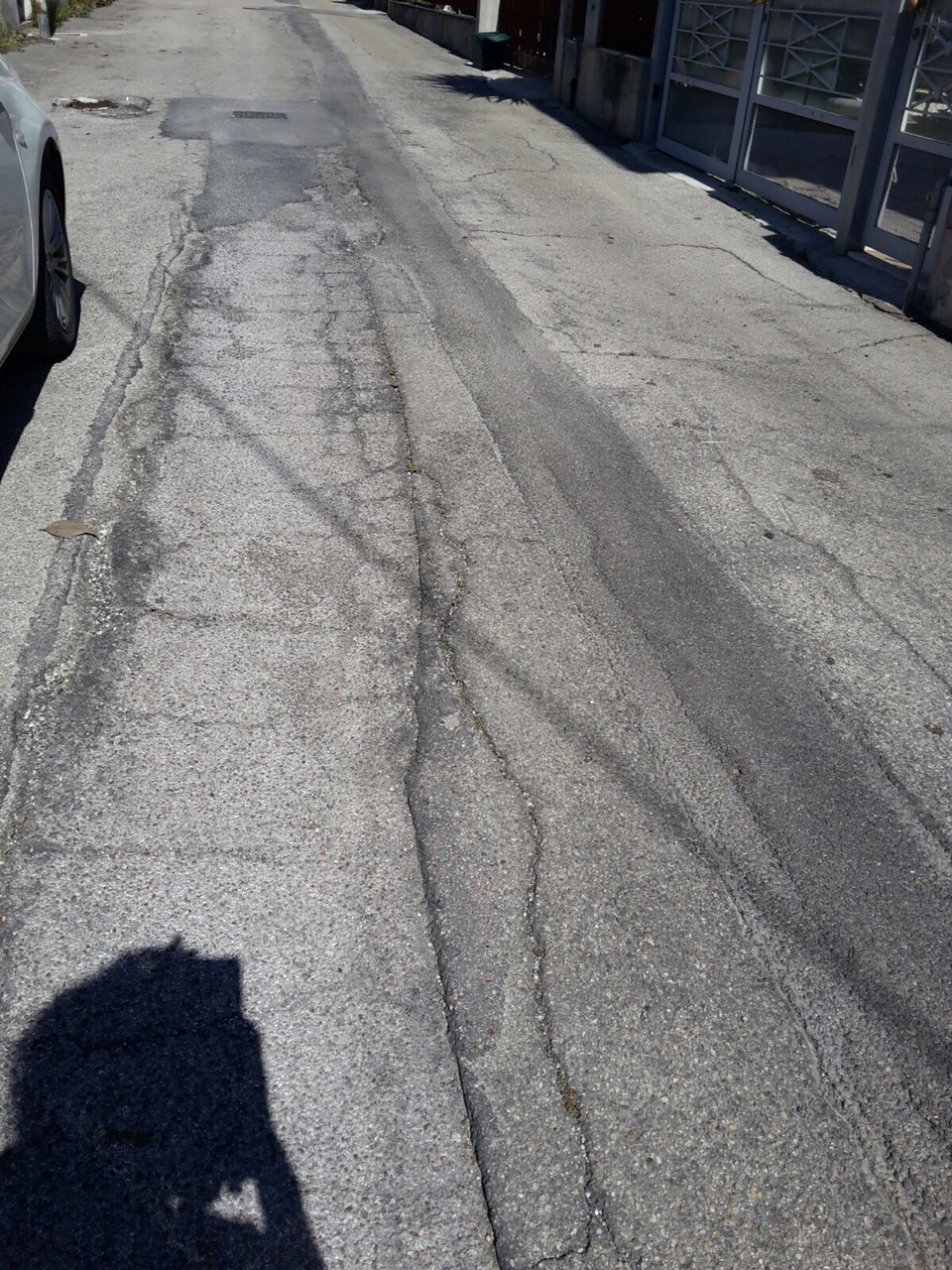 Strada al limite dell’impraticabile e nonostante le numerose segnalazioni inviate al Comune già da diversi mesi, nessun provvedimento é stato preso. Unica risposta ricevuta dagli uffici comunali “la pratica é stata evasa”, ma non si comprende che cosa significhi esattamente visto che tutto é rimasto così com’era. Su quella via, a parte diverse abitazioni private, anche uno studio medico con i pazienti costretti a sopportare non pochi disagi per raggiungere gli ambulatori.