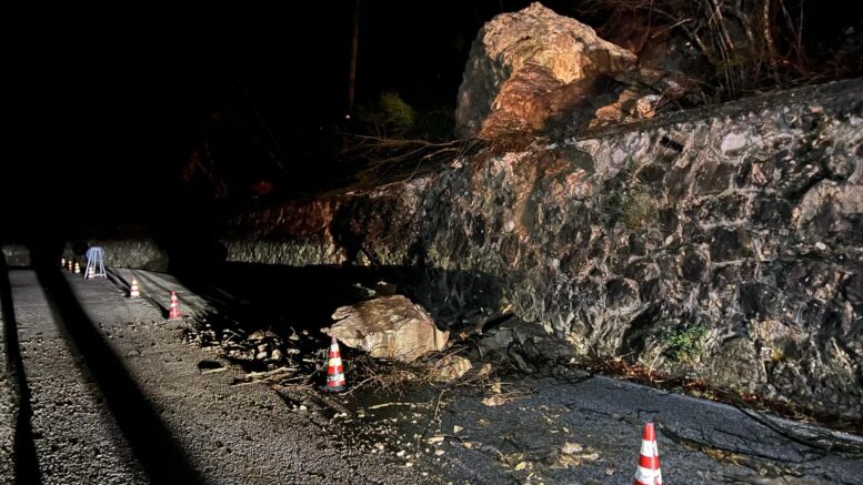 Pietracamela. Tanta paura la notte scorsa sulla SP 43 Ponte Arno Prati di Tivo. Due massi hanno invaso la carreggiata per fortuna senza colpire veicoli in transito