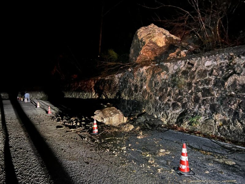 Pietracamela. Tanta paura la notte scorsa sulla SP 43 Ponte Arno Prati di Tivo. Due massi hanno invaso la carreggiata per fortuna senza colpire veicoli in transito