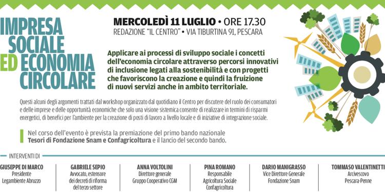 Si é tenuto ieri presso la redazione de “Il Centro” un interessante workshop su Impresa Sociale ed Economica Circolare nel corso del quale é stato assegnato il primo bando nazionale “Tesori” di Fondazione Snam e Confagricoltura.