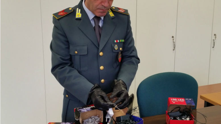 Vasto, la Finanza sequestra luminarie fuorilegge. 750mila luci natalizie fuorilegge sono state sequestrate dagli uomini della Guardia di Finanza a Vasto. Nell’ambito di alcuni controlli lungo l’ Autostrada A/14 scoperti abiti per bambini con marchio contraffatto.