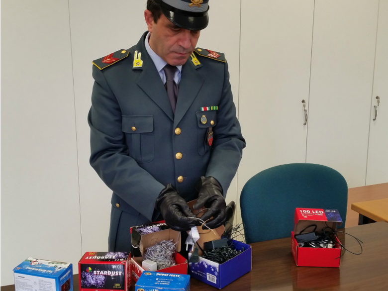 Oltre 750.000 luci natalizie prive del marchio CE e circa tremila capi di abbigliamento con marchio contraffatto sono stati sequestrati dalla compagnia Guardia di Finanza di Vasto, nell’ambito di un apposito servizio mirate a tutelare le attività commerciali regolari. Le luminarie sono state trovate dai finanzieri in un esercizio commerciale di Vasto gestito da un cinese; scattata una sanzione amministrativa di 16.000 euro. Il secondo servizio è scaturito da un controllo sull’autostrada A14, tra i caselli Vasto sud e Val di Sangro: durante l’ispezione di un furgone una pattuglia ha scoperto 3.428 articoli di abbigliamento per bambini: oltre ad avere il marchio contraffatto, erano in tessuto con coloranti di qualità scadente, dato che da un semplice sfregamento la colorazione dell’articolo svaniva. Il proprietario della merce è stato denunciato.